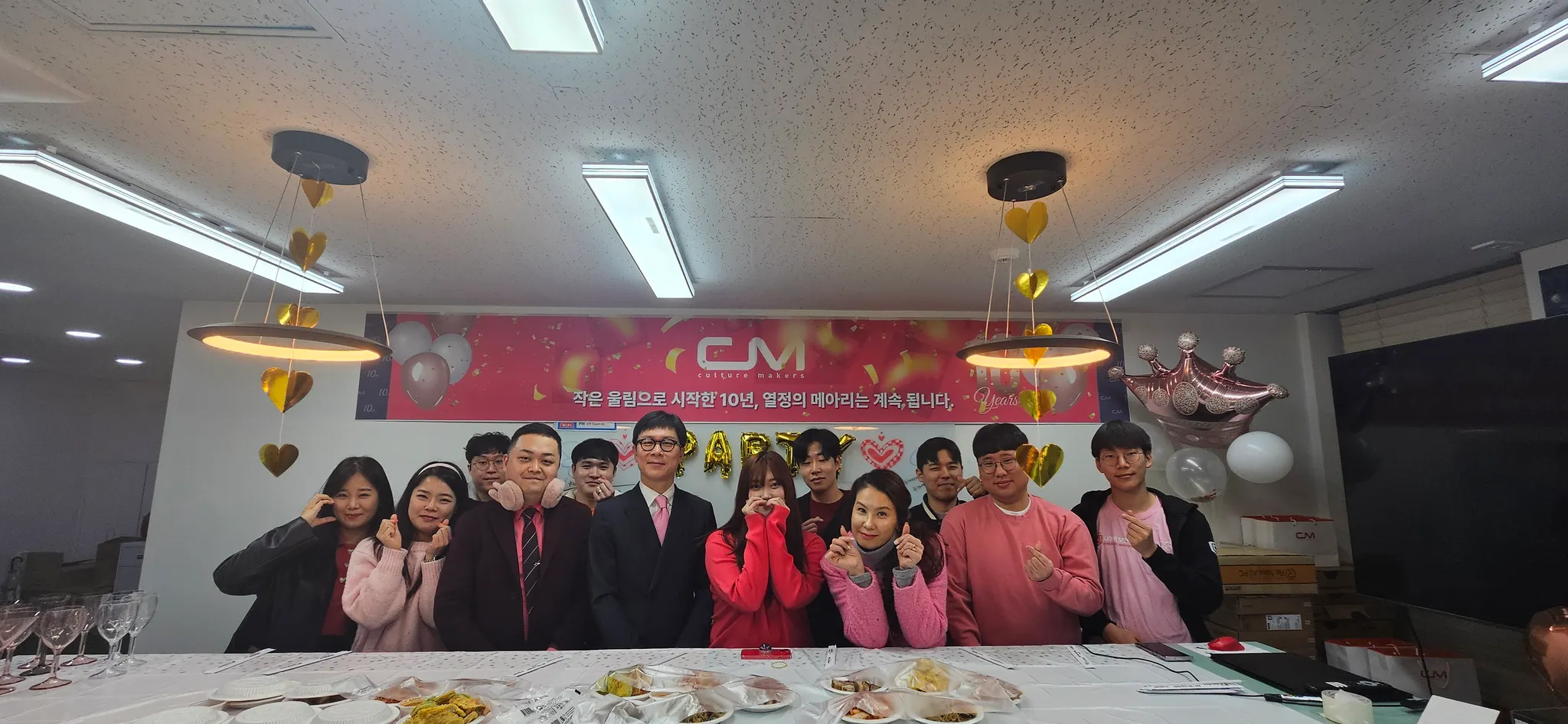 2024년 2월 14일, 컬처메이커스는 회사 설립 10주년을 기념하여 내부 직원들을 대상으로 한 특별 행사를 성황리에 개최하였습니다. 이 행사는 직원들의 노력과 성장을 기리고, 앞으로의 비전을 공유하는 뜻깊은 자리였습니다